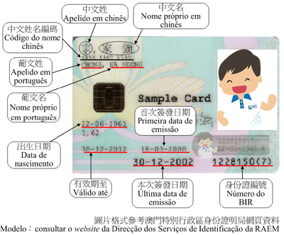 Dados pessoais (conforme o BIR - Bilhete de Identidade de Residente, vide a imagem mais abaixo)