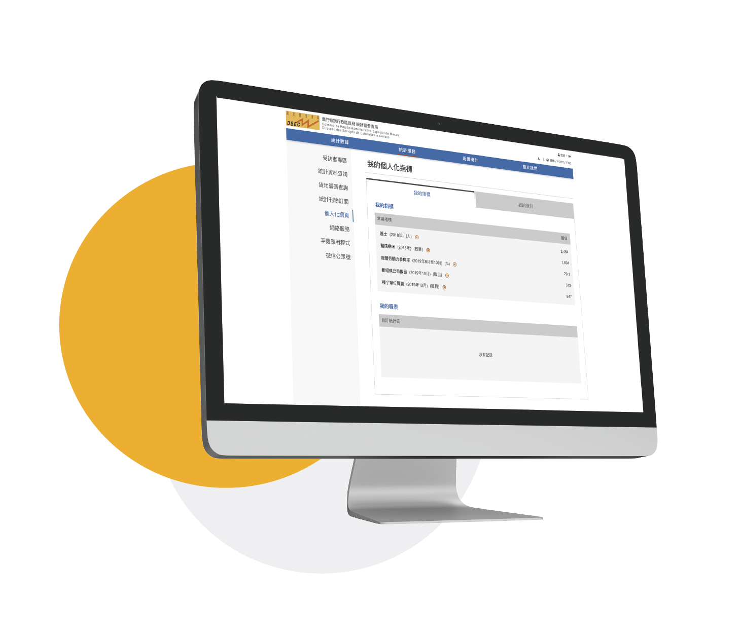 只要進行簡單的註冊,便可立即使用“我的統計”服務。登入“我的統計”後,您可儲存所關心的統計指標、統計刊物、統計報表及圖表。