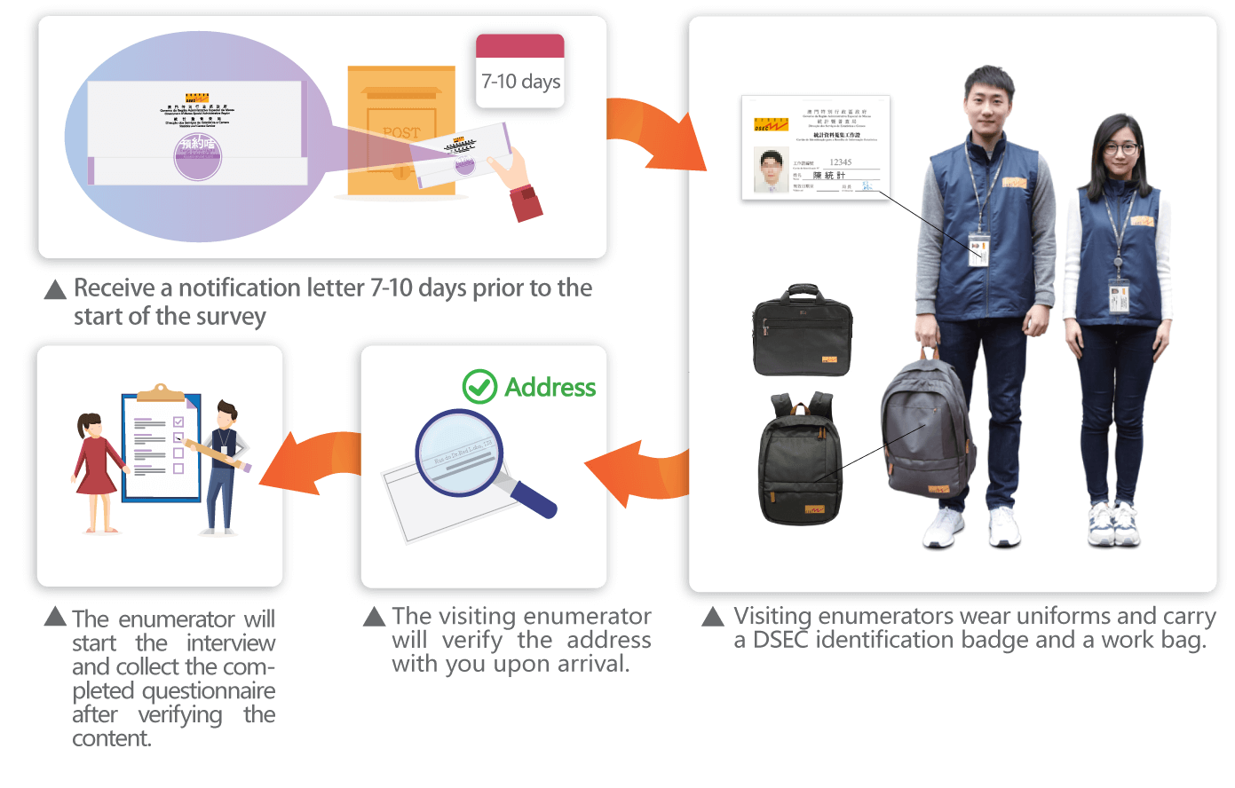 Individual data collected are used solely for statistical analysis by DSEC and results will be published in aggregate form, which means, no information pertaining to individual persons or establishments can be identified directly or indirectly from the statistical publications.
