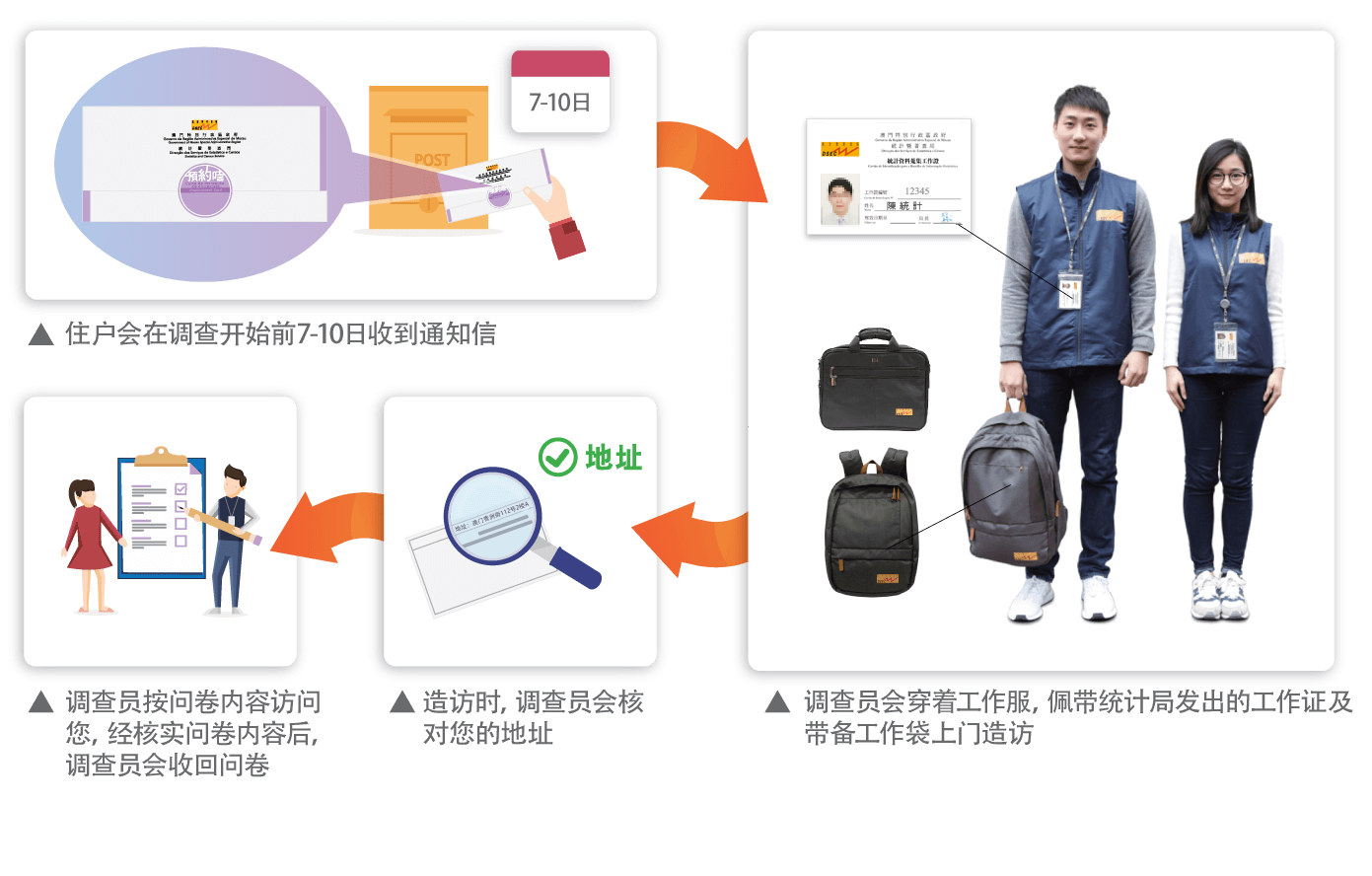 受访者在收到统计局发出的调查通知信后,可选择透过“一户通”内的“政府统计问卷”服务,按指示开通及绑定调查问卷,即可使用手机或电脑在网上填报问卷资料。
